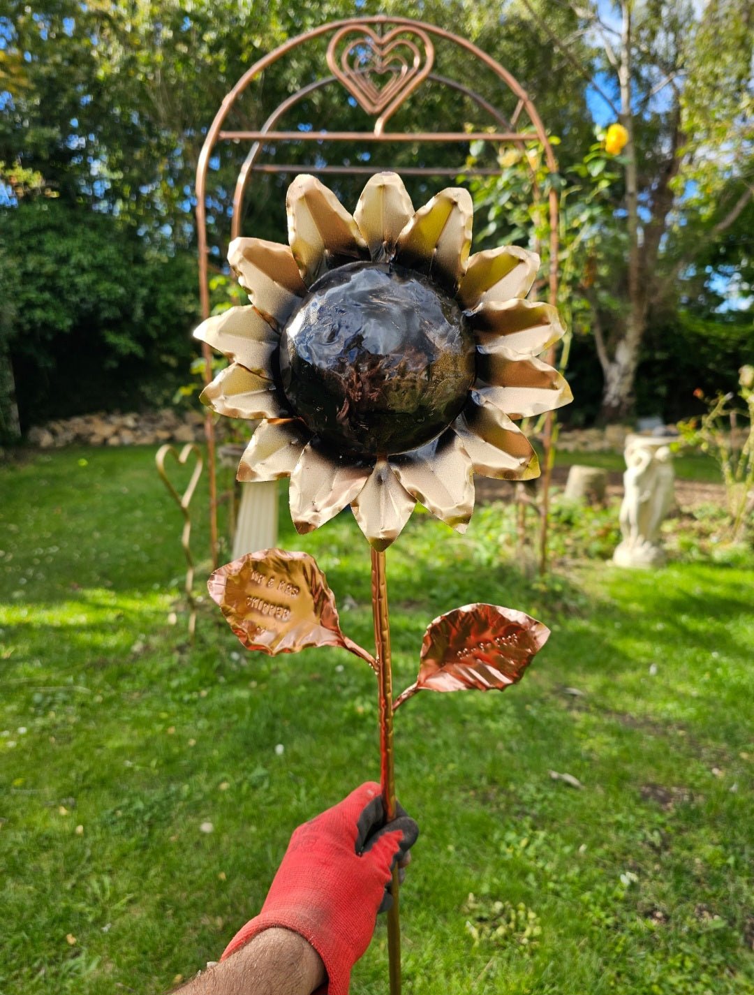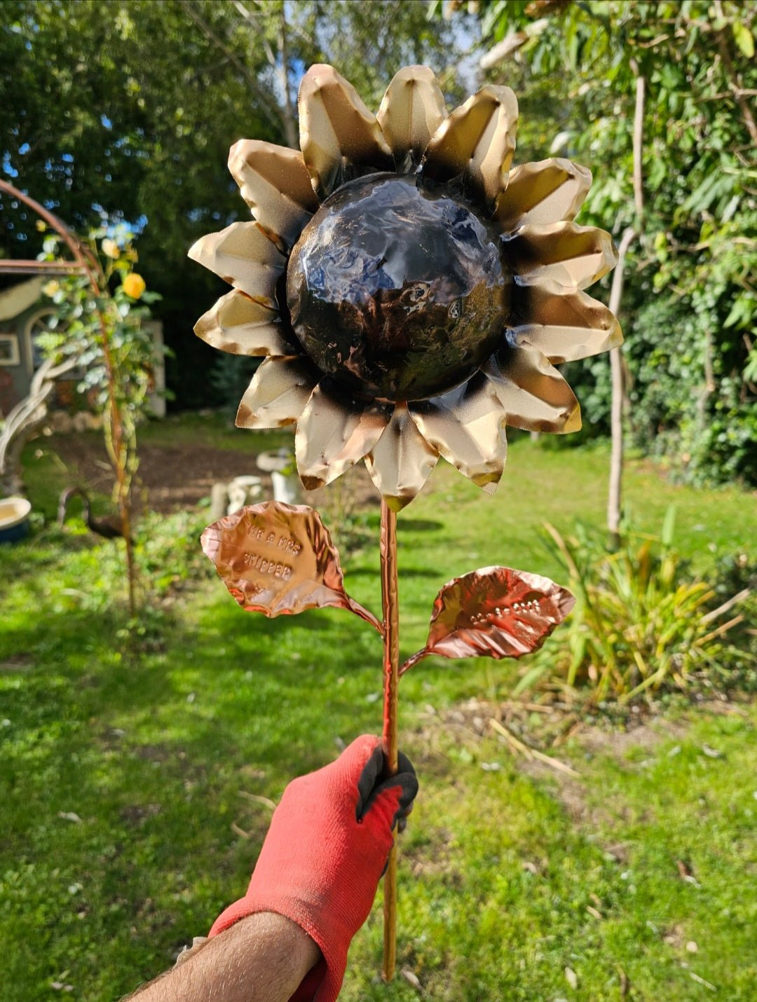 The Copper Sunflower is the perfect addition to your indoor and outdoor spaces. Crafted from high quality copper, this standard-sized sunflower offers both beauty and durability. Add a touch of elegance to your home with this timeless piece.