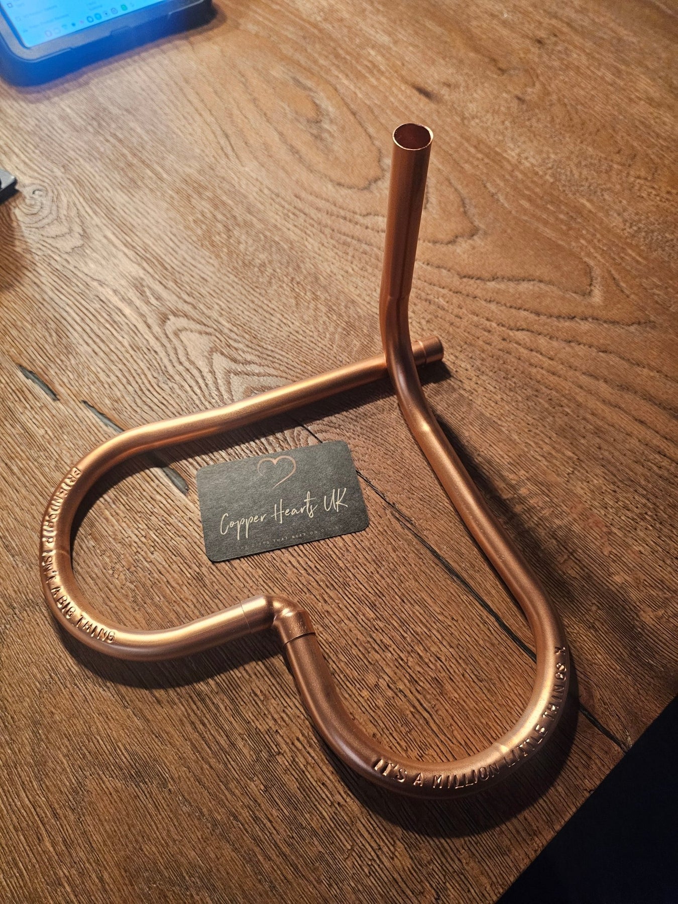 Add a touch of elegance to your home decor with our Copper Heart Flower Stand. Made for standard size flowers, this stand is crafted from high-quality copper for durability and style. Elevate your floral arrangements with this beautiful and charming stand.